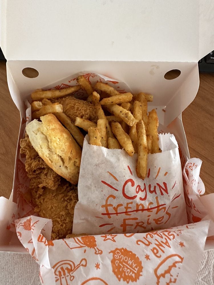 Crispy popcorn shrimp, a side, buttermilk biscuit, and drink. A shrimply delightful pairing. Upgrade to a LARGE COMBO with 2 sides and 1 large drink.