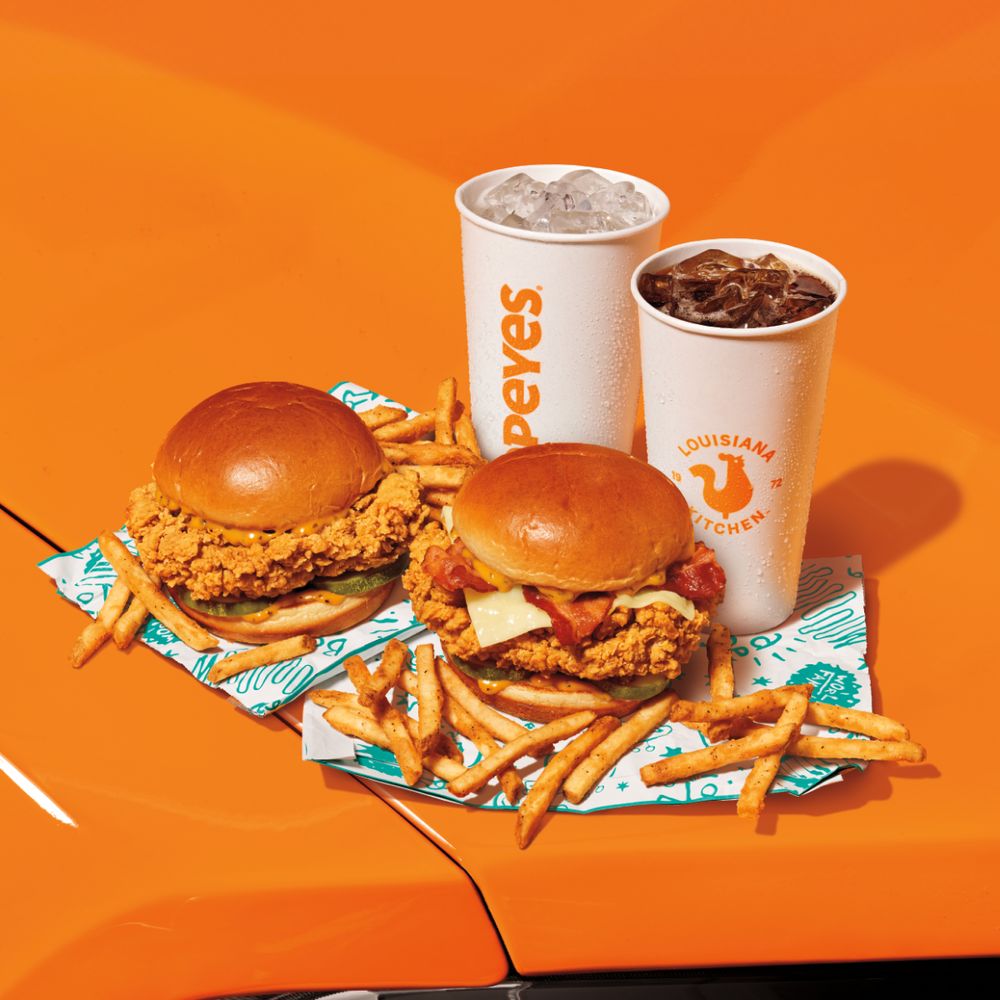 A juicy chicken breast fillet marinated in Popeyes seasonings, hand battered and breaded in our buttermilk system, fried until golden brown. Sandwiched between two buttery toasted brioche buns, topped with our barrel cured pickle slices, classic mayo, havarti cheese and bacon.
